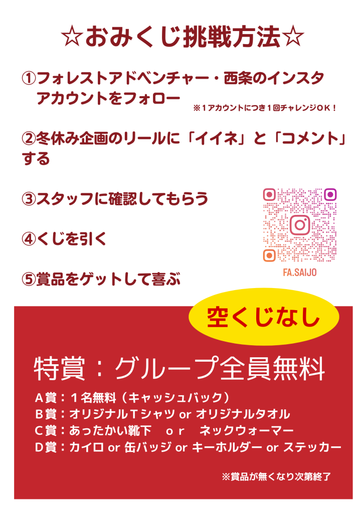 今年最後の運試し、新年始めの運試しにぜひフォレストアドベンチャー西条へお越しくださいませ! お待ちしております!